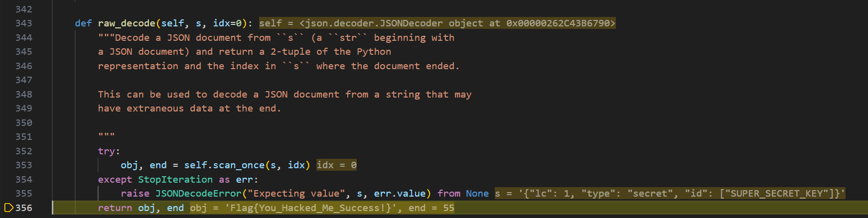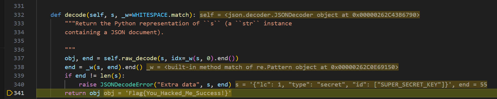 classTest: def__init__(self, a, b): self.a = a self.b = b def__repr__(self): returnf"<Test a={self.a} b={self.b}>" defuser_decoder(d): if'a'in d and'b'in d: return Test(d['a'], d['b']) return d